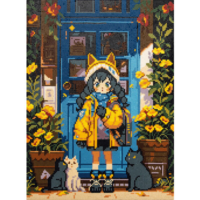 "Кристальная мозаика" ALPD-329 на подрамнике "Девочка с котиками". 30 х 40 см