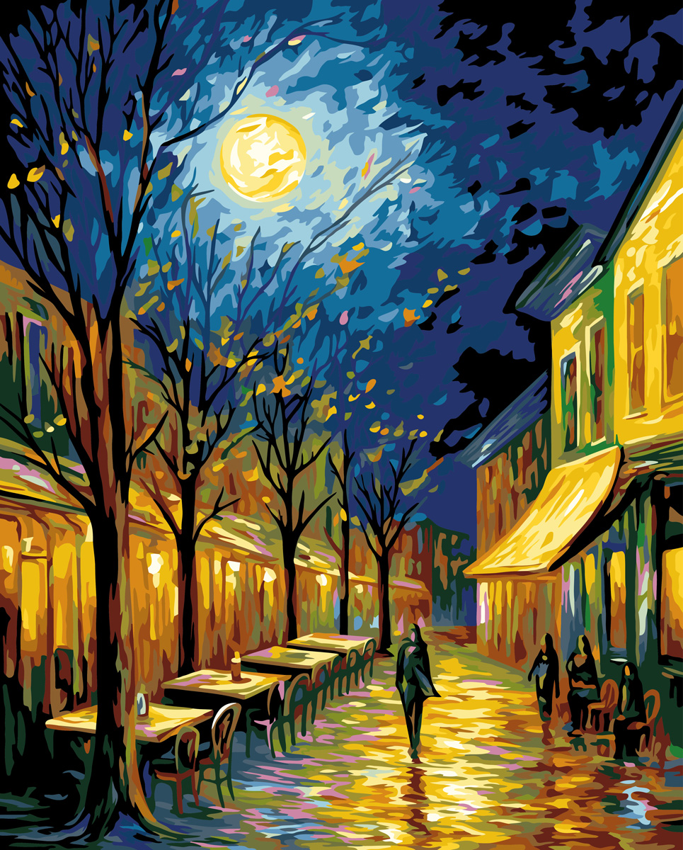 PNB/PLC-301 Набор для раскрашивания по номерам ( цветной холст ). "В ночи парижской улицы"