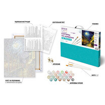 | Состав набора | Подробная инструкция, Акриловые краски, Кисти, Держатель для готовой работы, Холст на подрамнике с цветной схемой | |