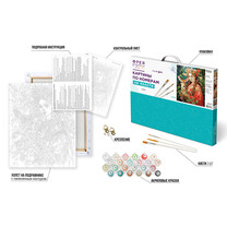 Состав набора | Подробная инструкция, Кисти, Держатель для готовой работы, Холст на подрамнике, Акриловые краски |