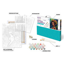 Состав набора | Держатель для готовой работы, Подробная инструкция, Акриловые краски, Кисти, Холст на подрамнике |