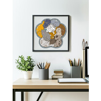 В наборе нет ни одного повторяющегося элемента, все они имеют свою уникальную форму: есть фигуры сложной формы, а есть детали в форме конкретного предмета, имеющего отношение к тематике готовой картины. Так, например, из элементов в форме зайца, волка и лисы можно получить часть готового рисунка в виде горы.