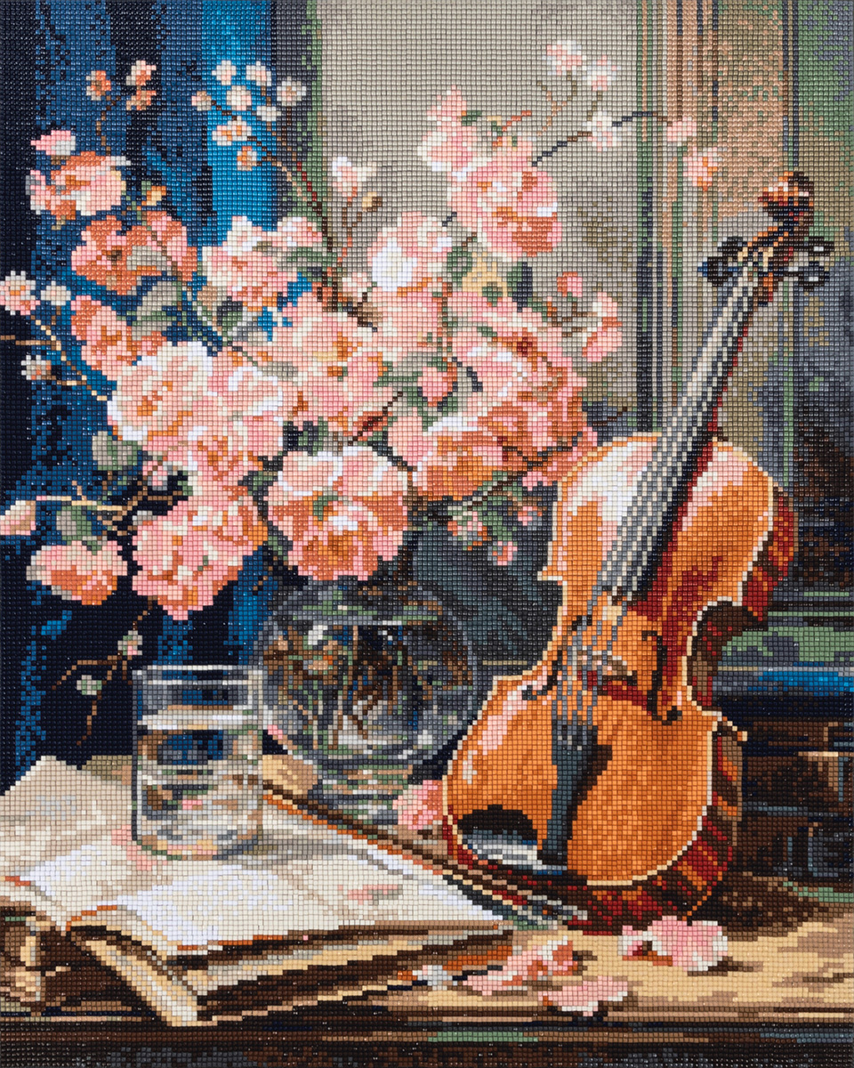 "Кристальная мозаика" ALPD-285 на подрамнике "Натюрморт со скрипкой". 40 х 50 см