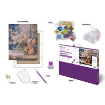 Состав набора | Пинцет, Стразы, Лоток, Холст с клеевым слоем и защитной пленкой на подрамнике, Стилус, Крепление |