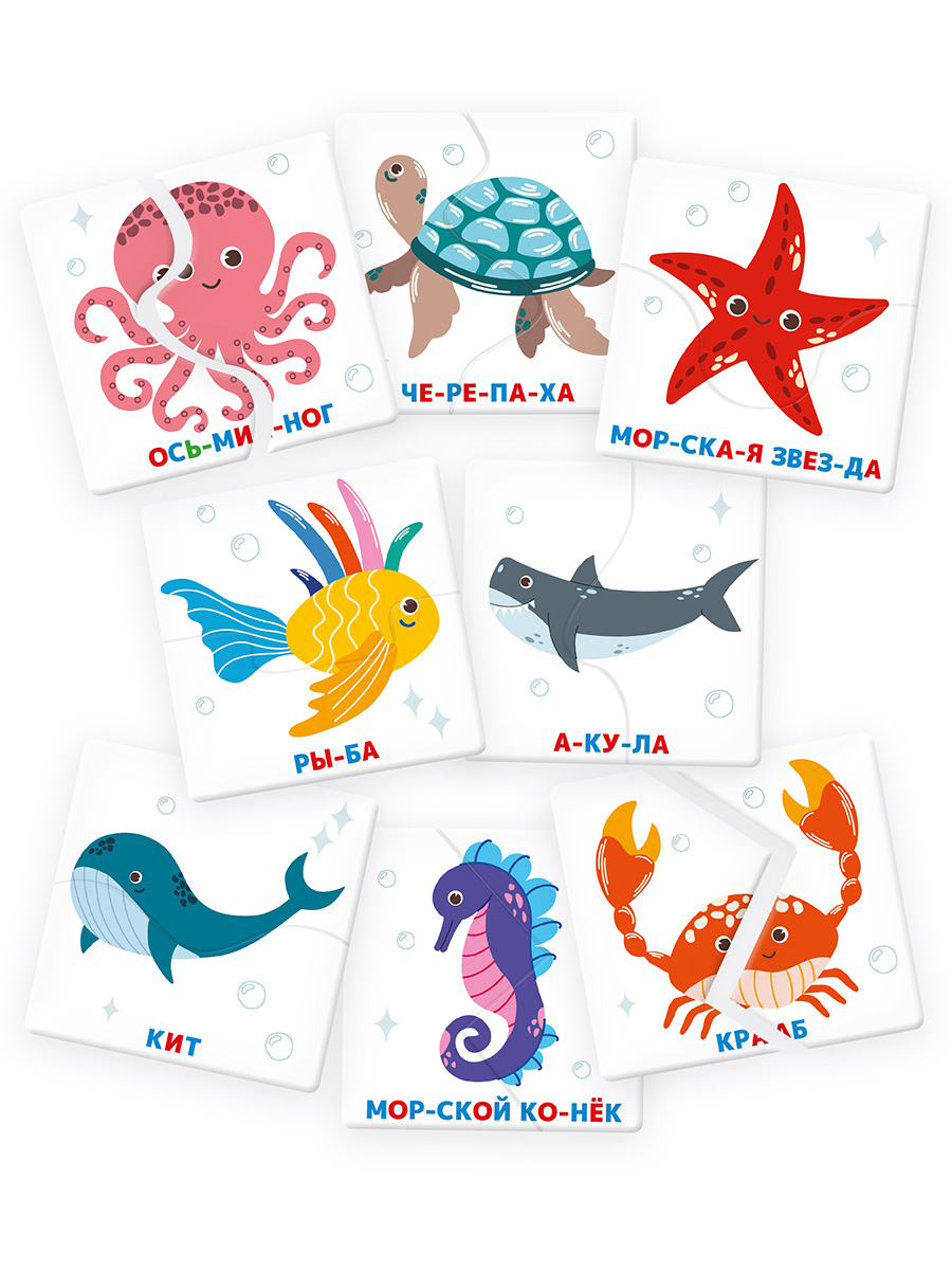 PZL-BК-002 Пазлы-половинки для малышей "Морские обитатели". .